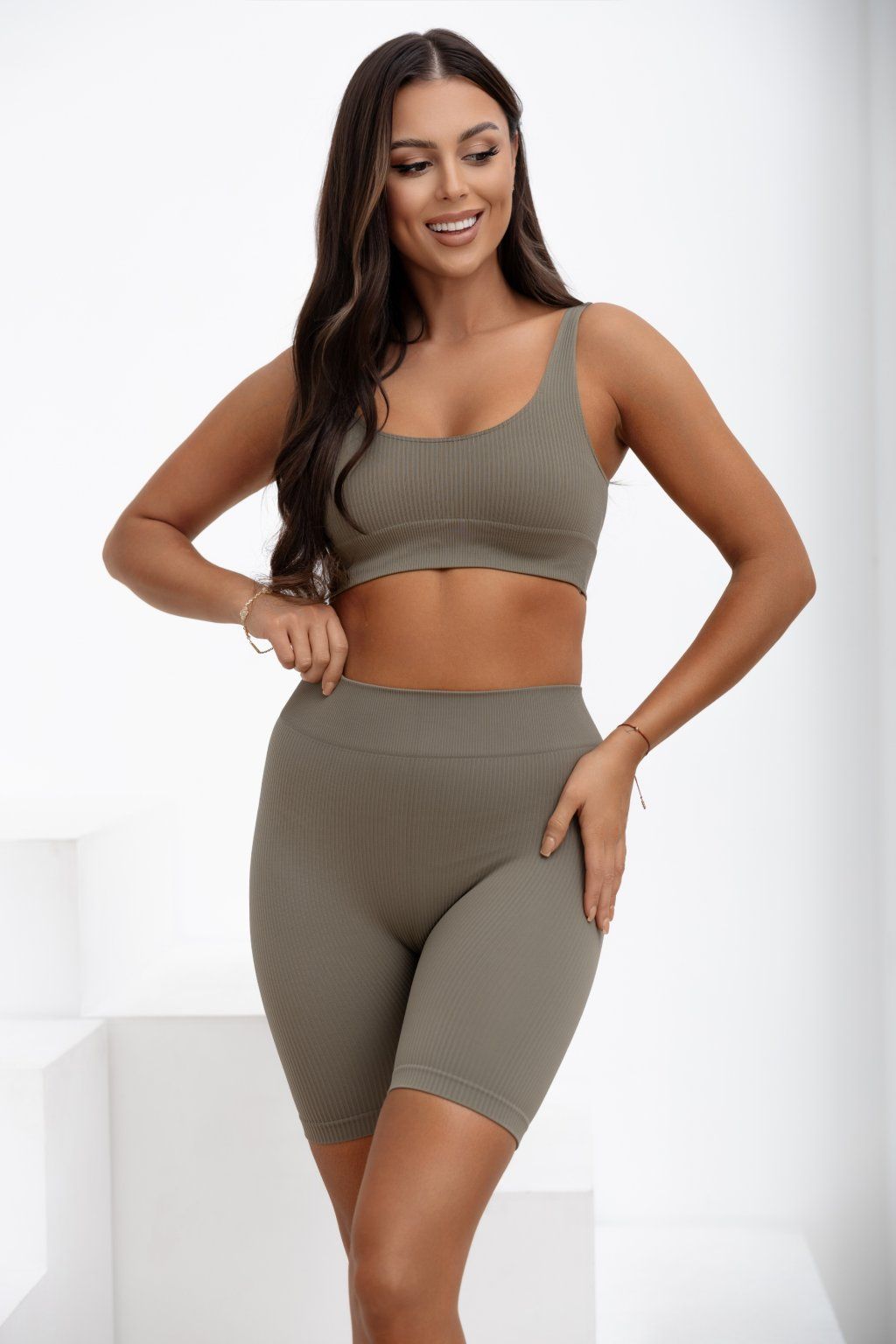 Bezešvé žebrované biker shorts Ballance khaki