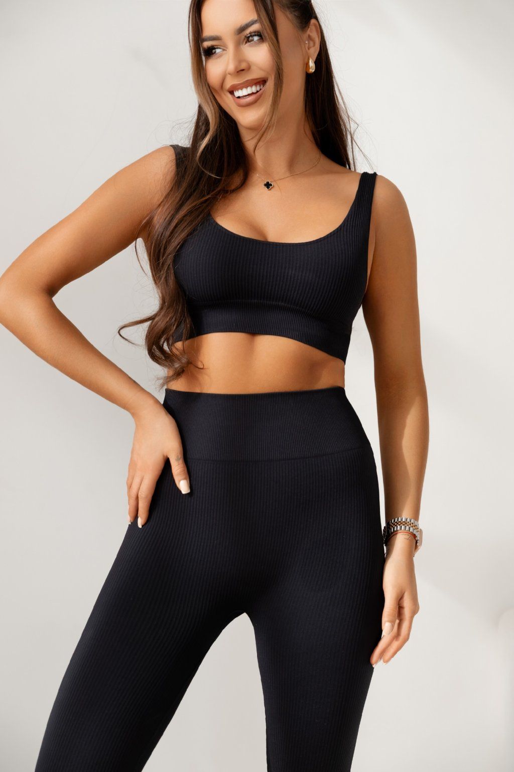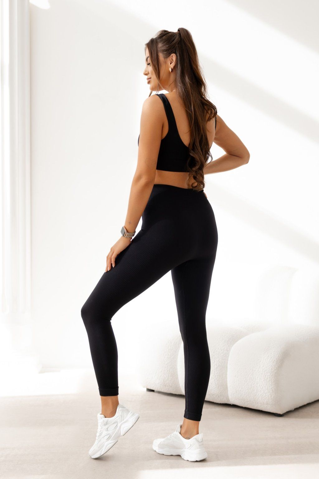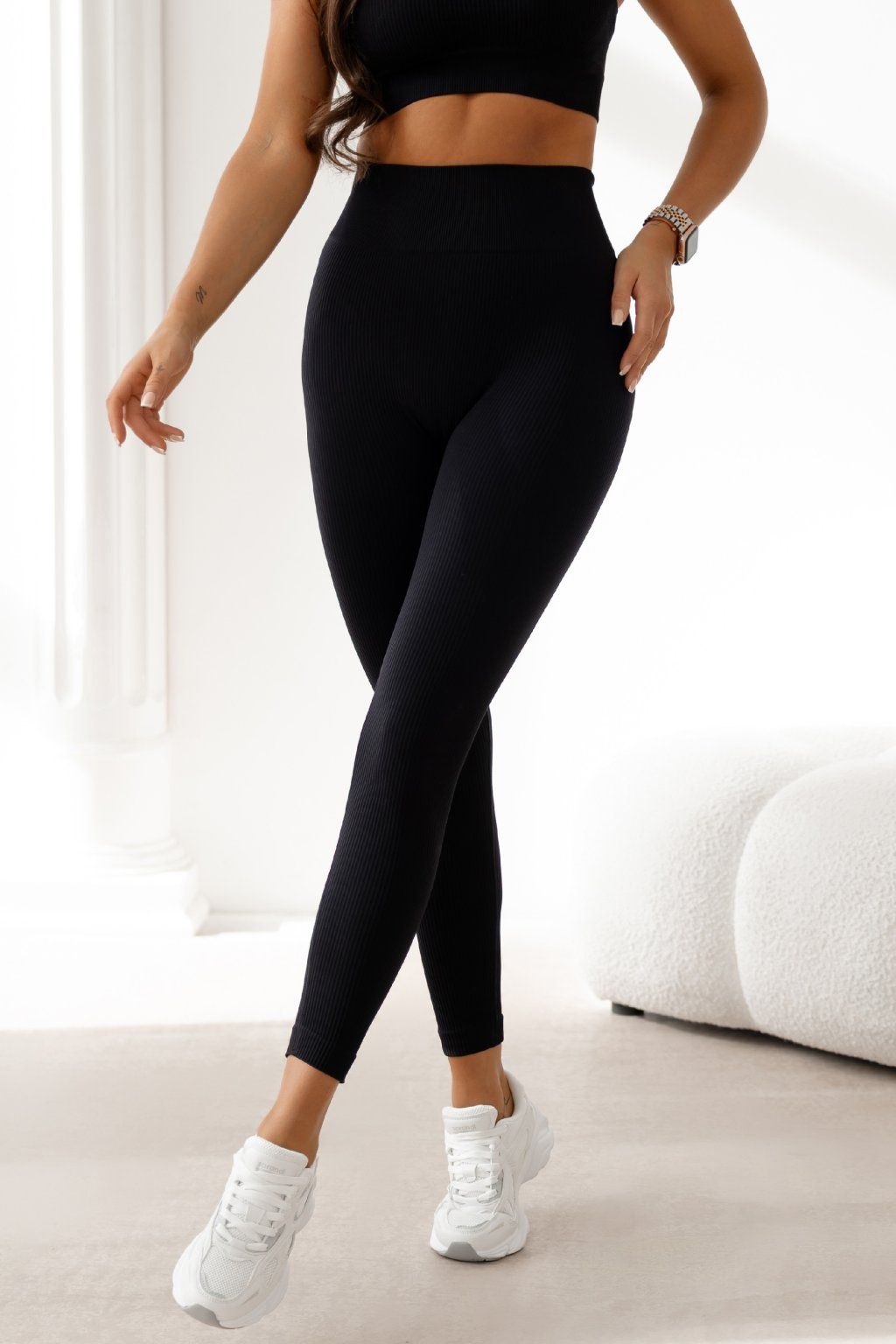 Bezešvé žebrované legíny Ballance černé