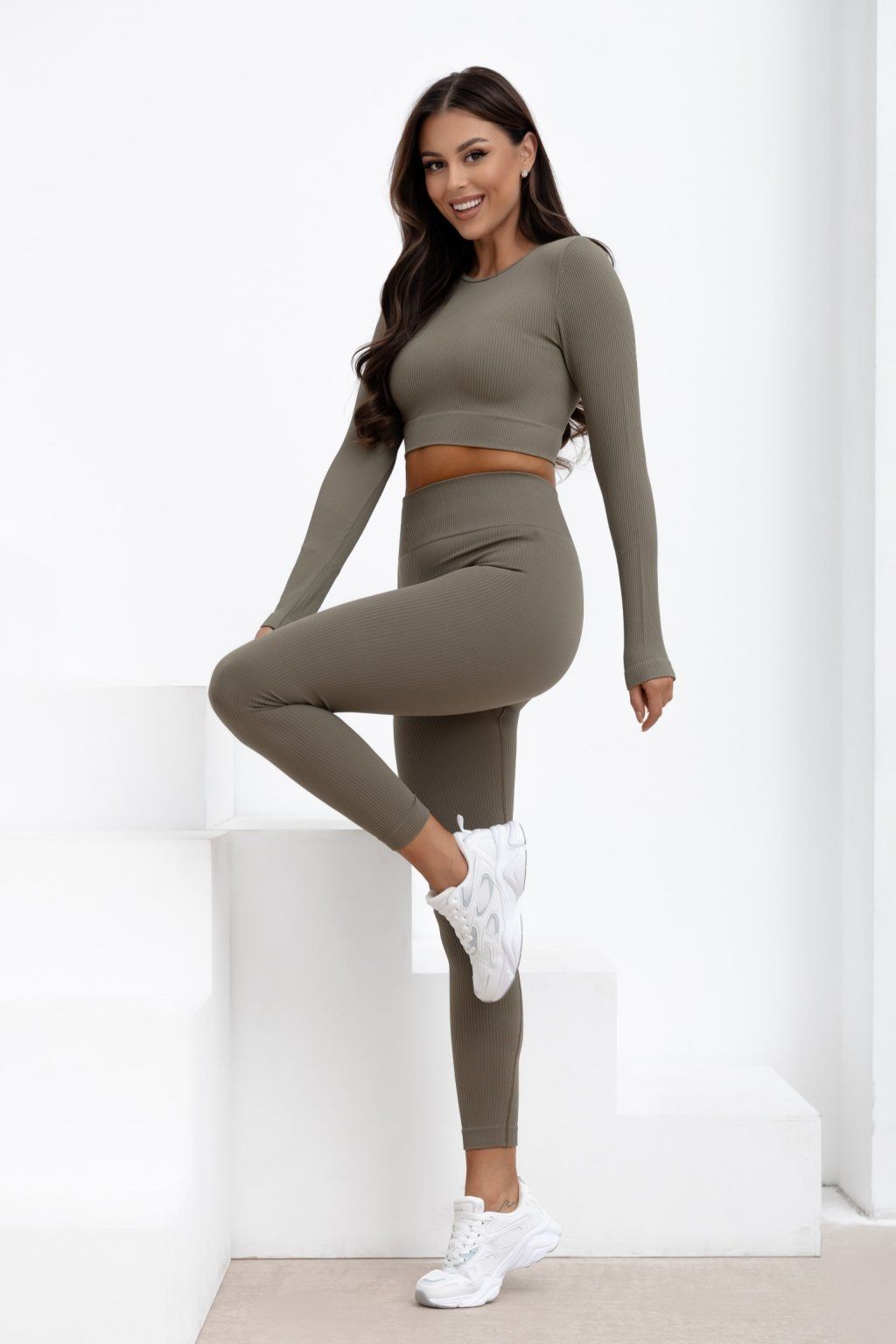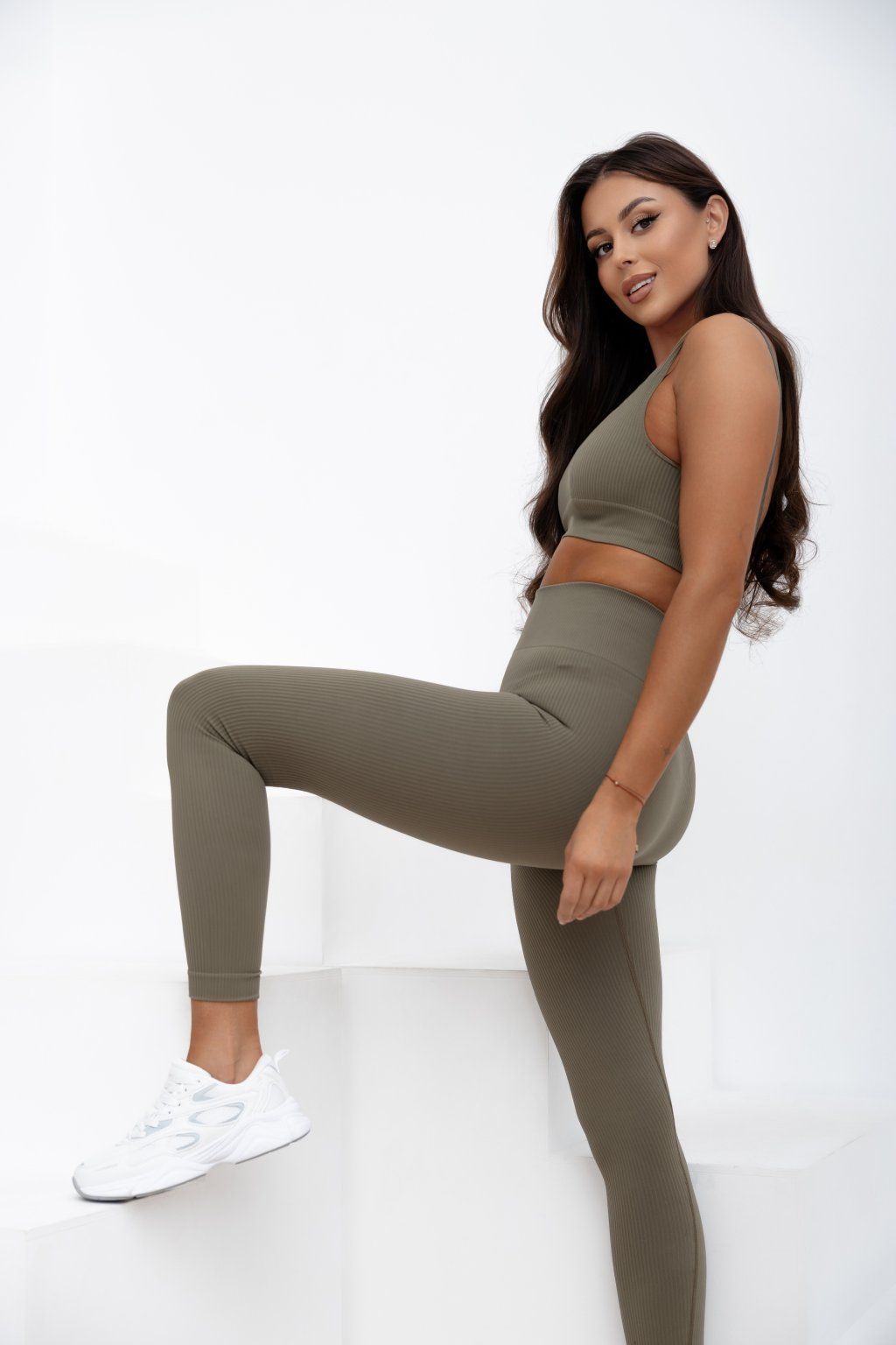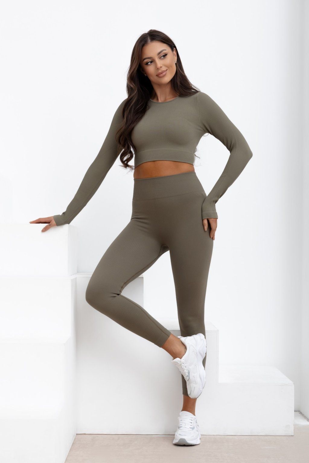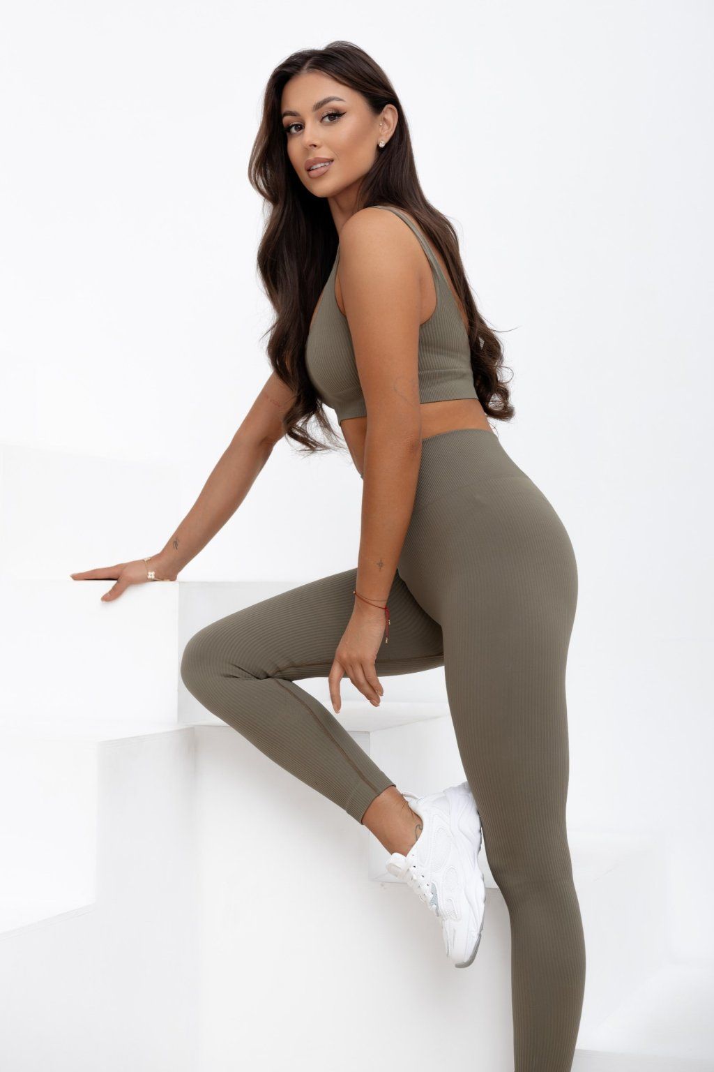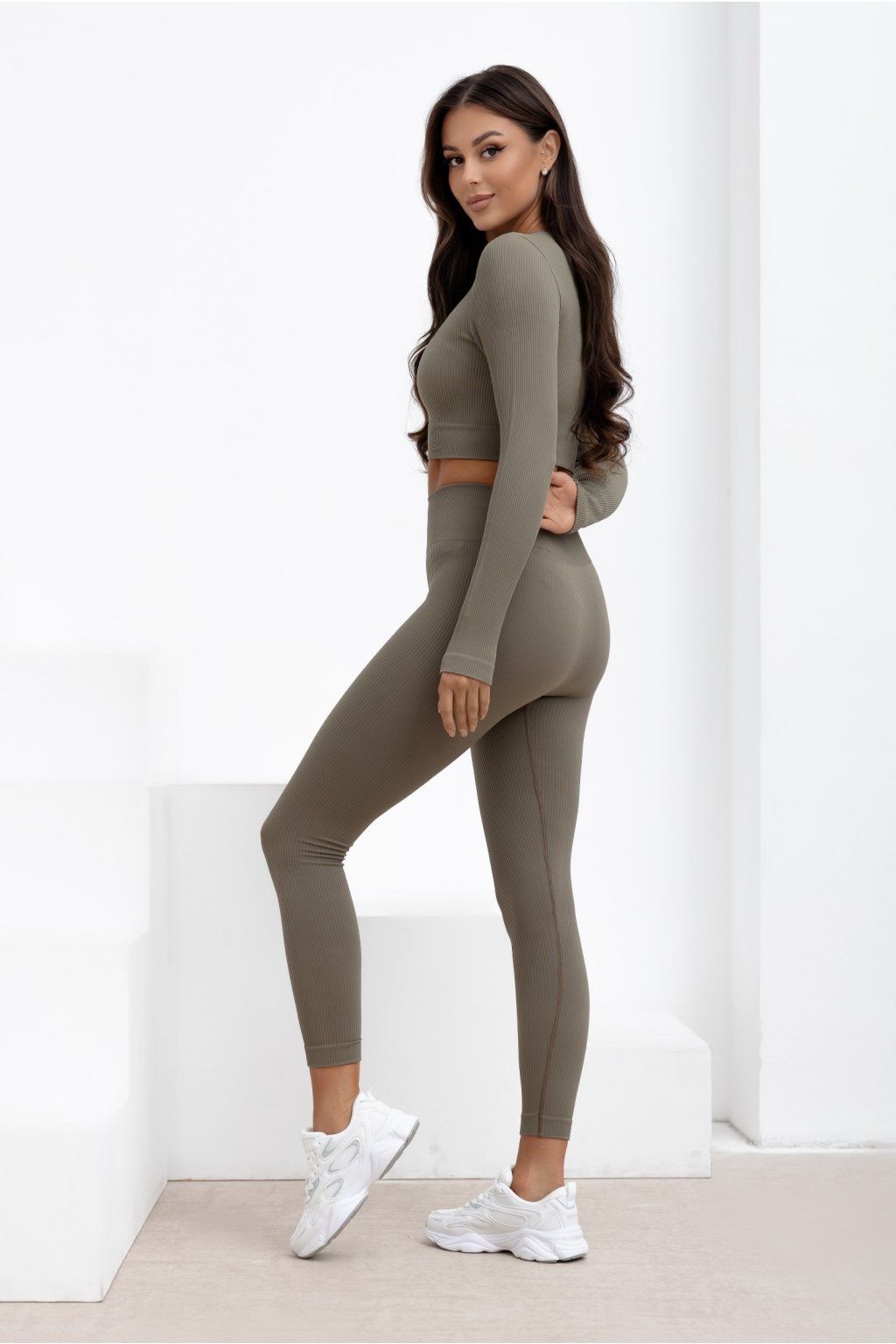 Bezešvé žebrované legíny Ballance khaki