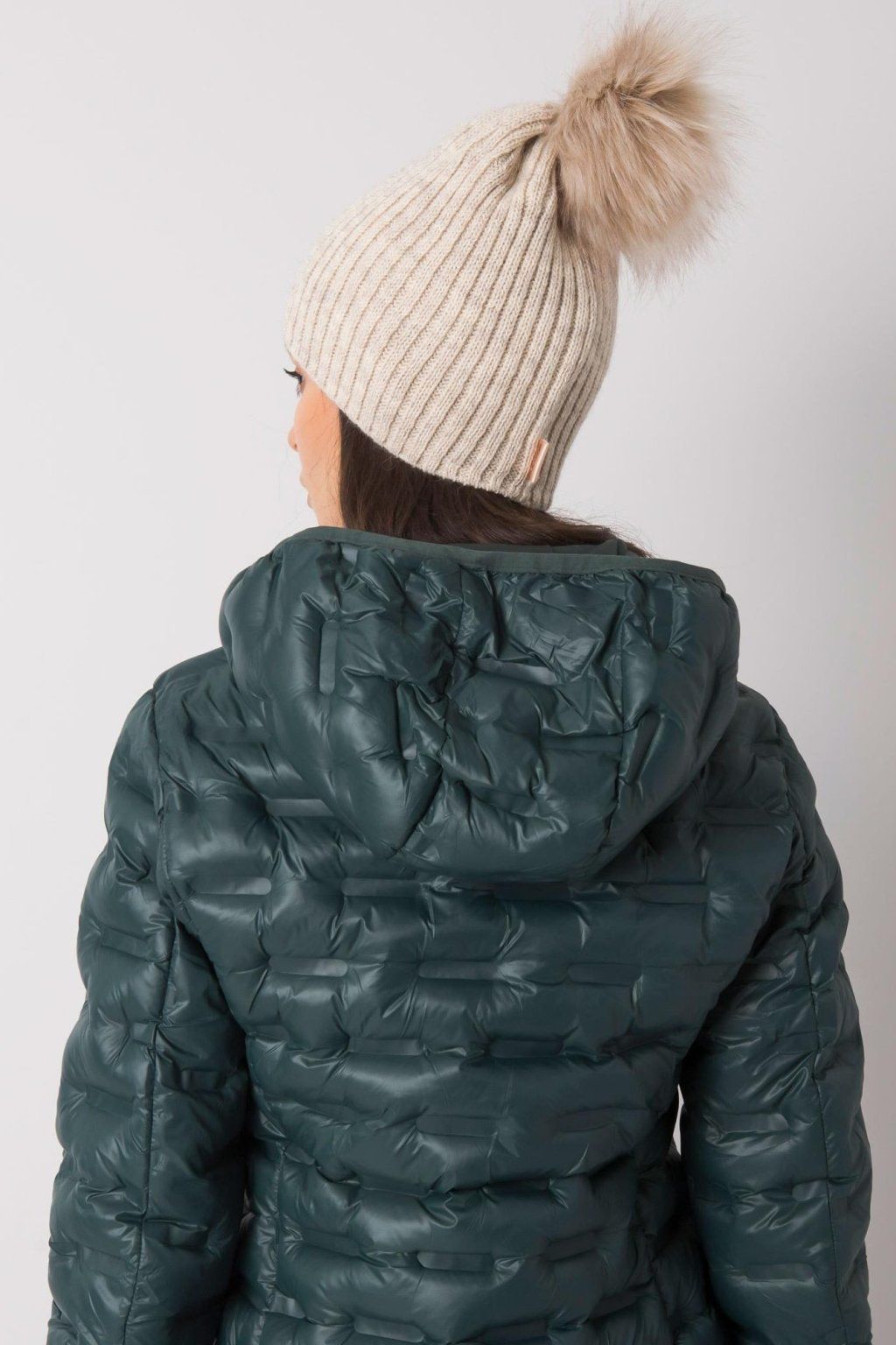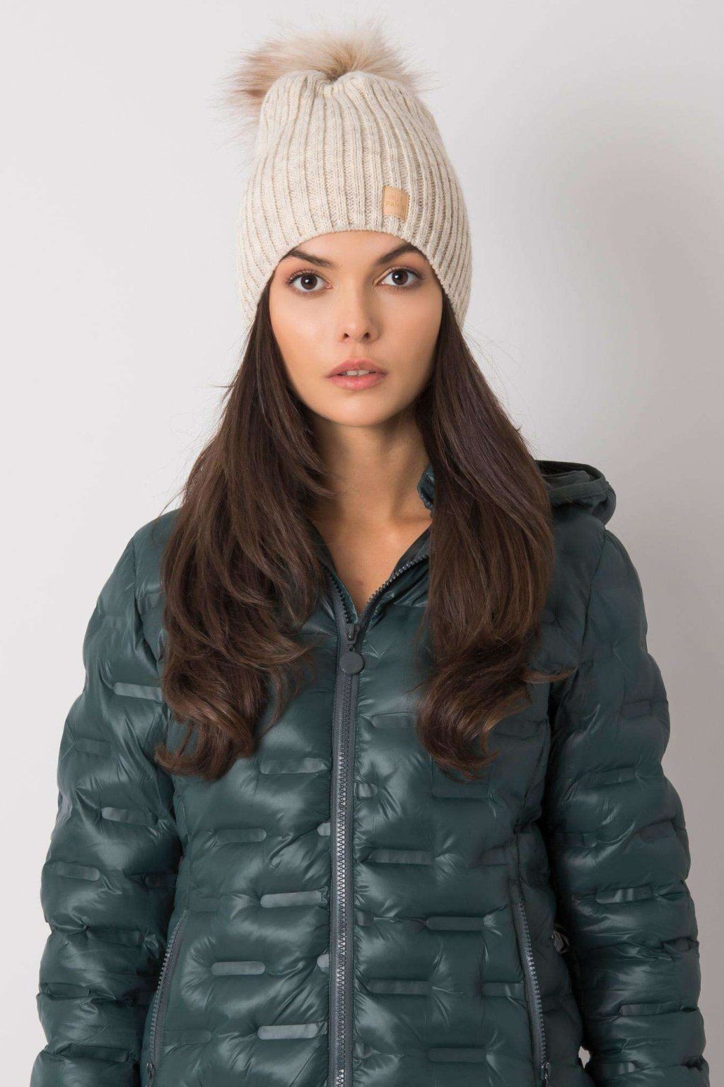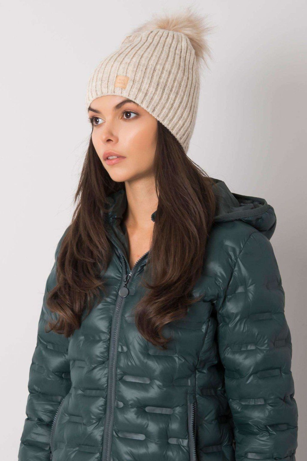 Béžová čepice s bambulí