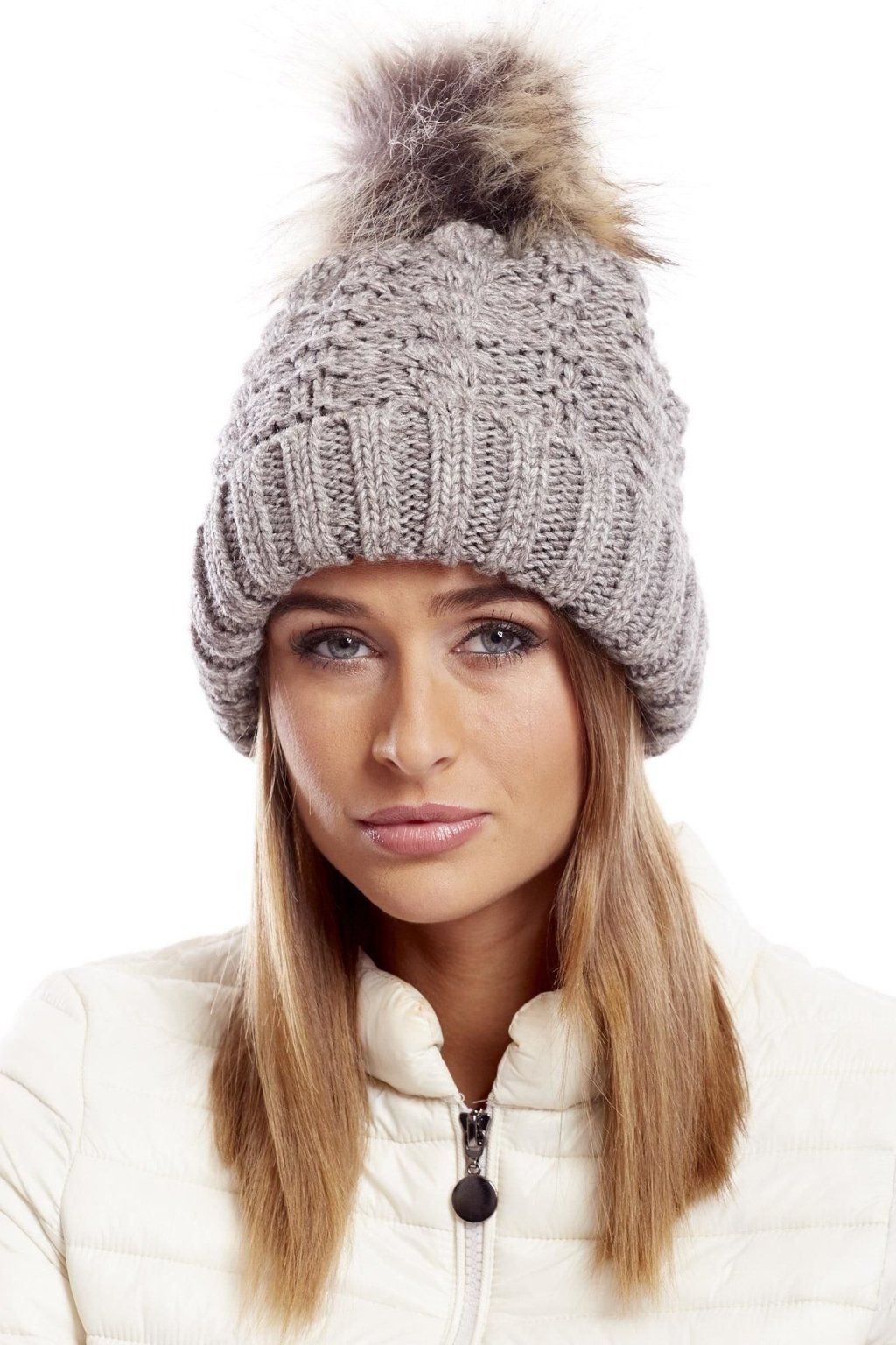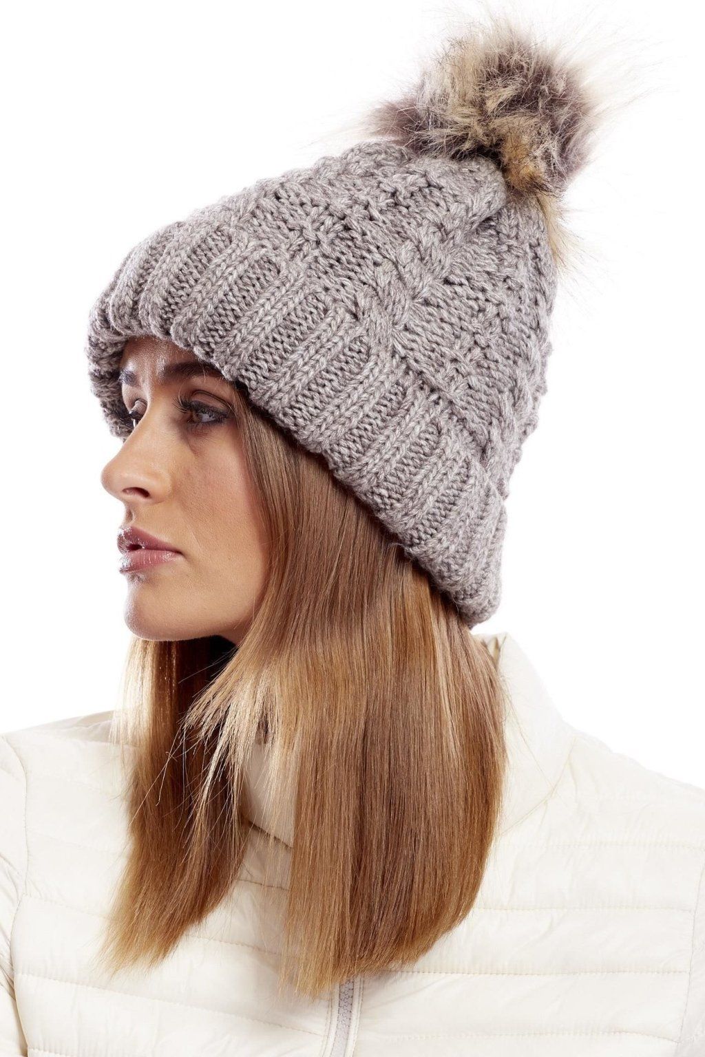 Čepice s kostkovaným stehem hnědá